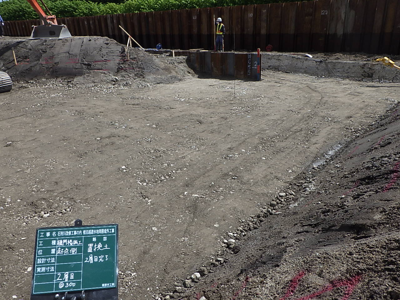 • 置換工(切込砂利80mm級)…V≒1,200m3