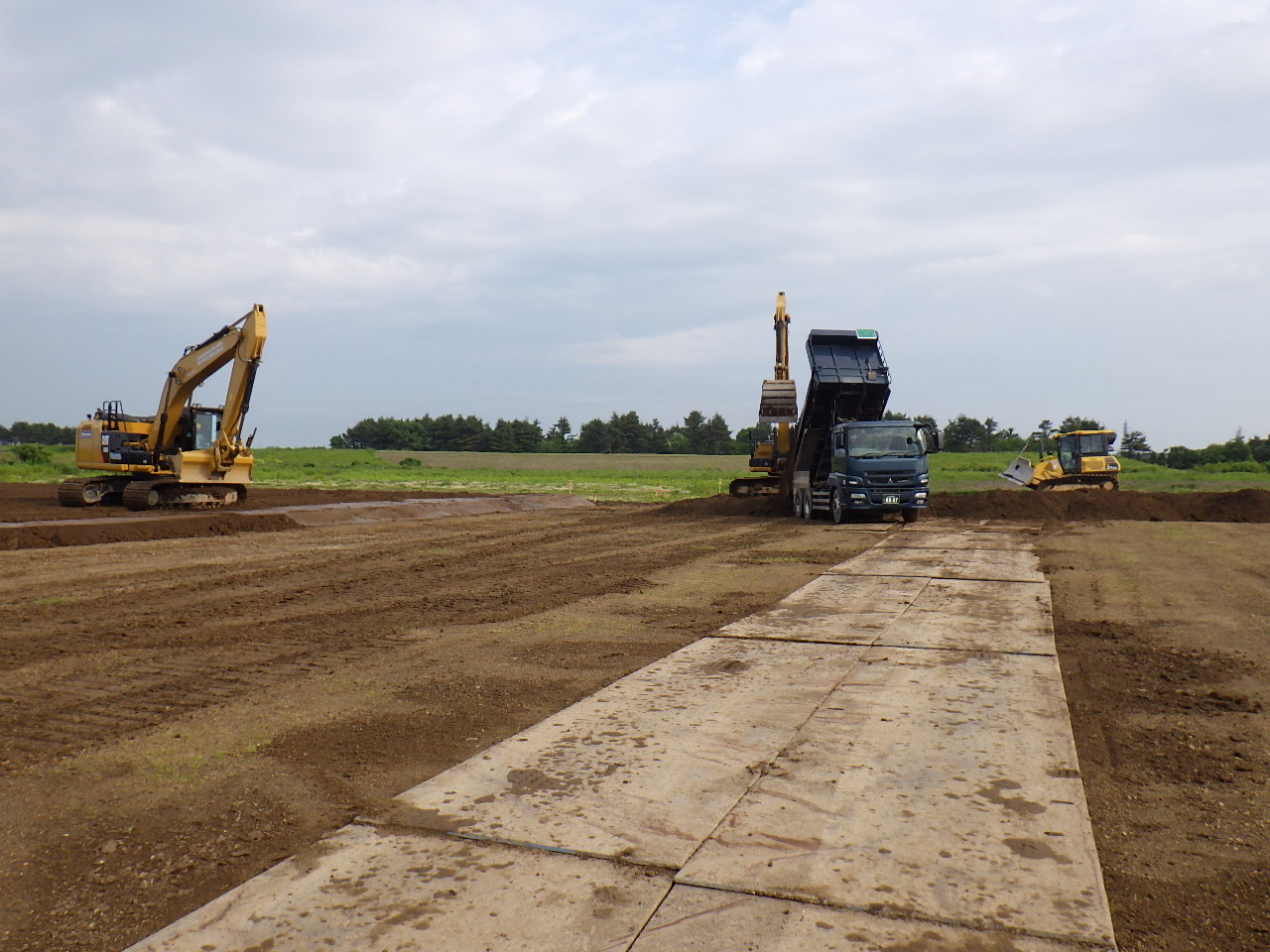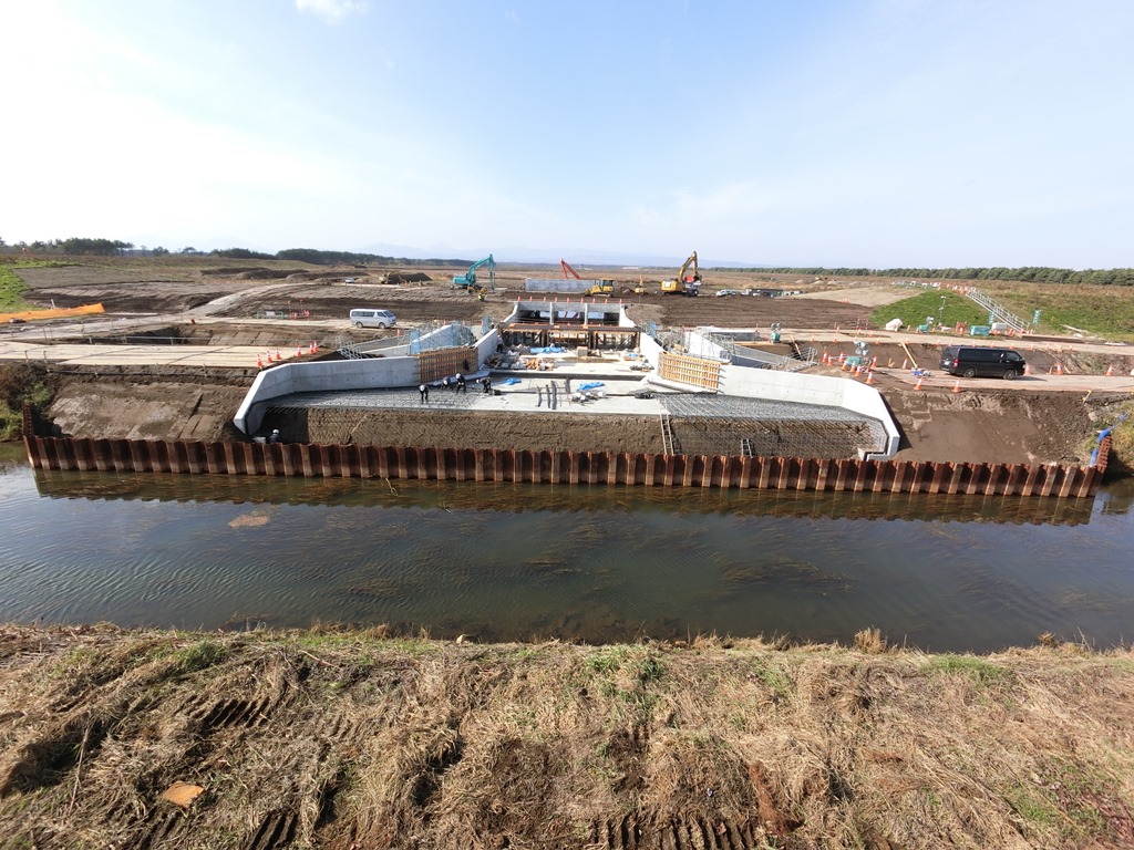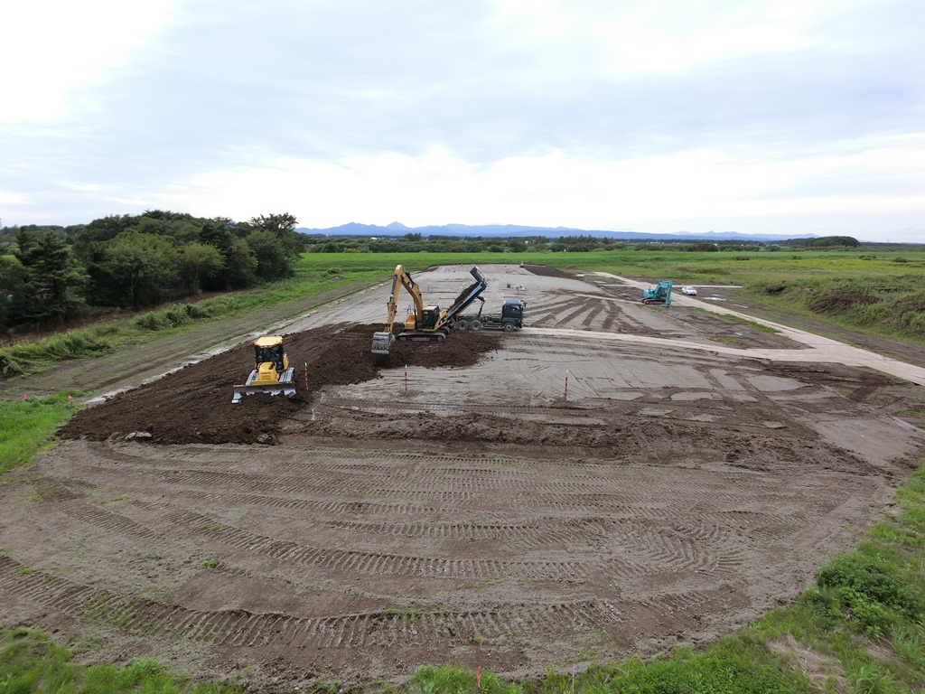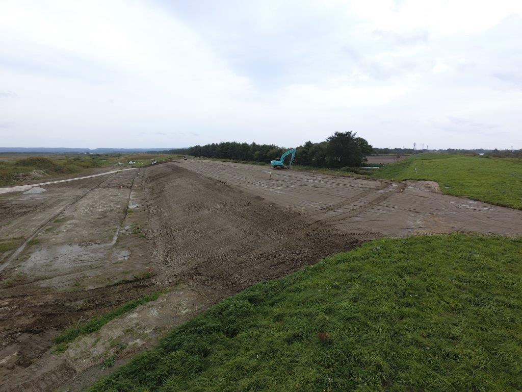 本工事は、千歳川河川整備計画に基づき、根志越遊水地の周囲堤外盛土を行うものである。