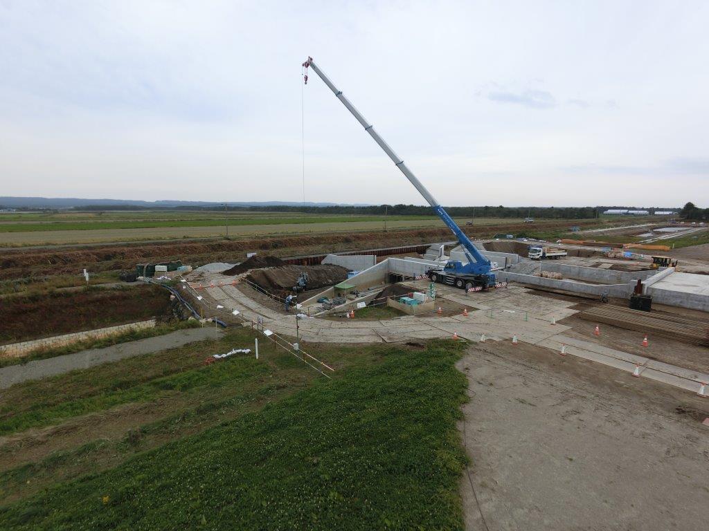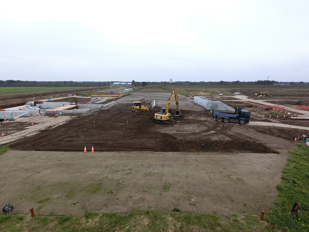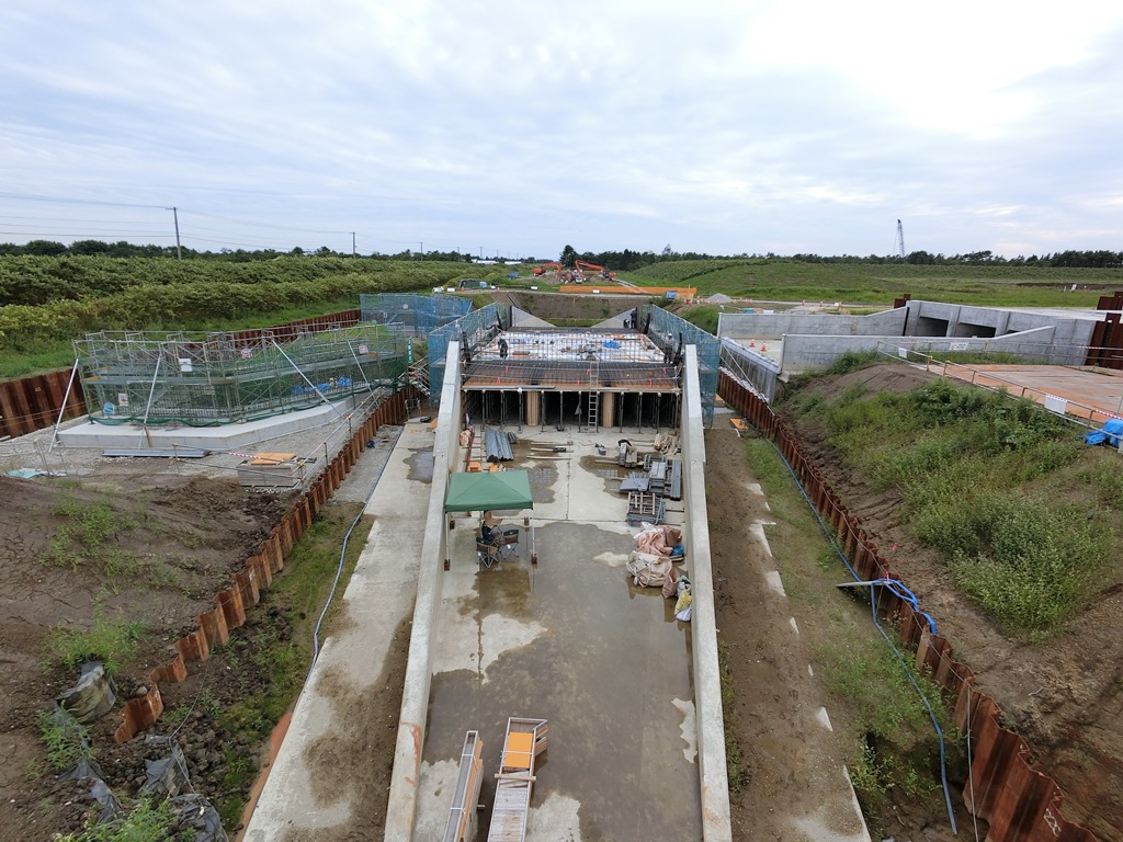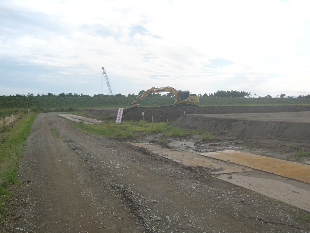 本工事は、千歳川河川整備計画に基づき、根志越遊水地の周囲堤外盛土を行うものである。