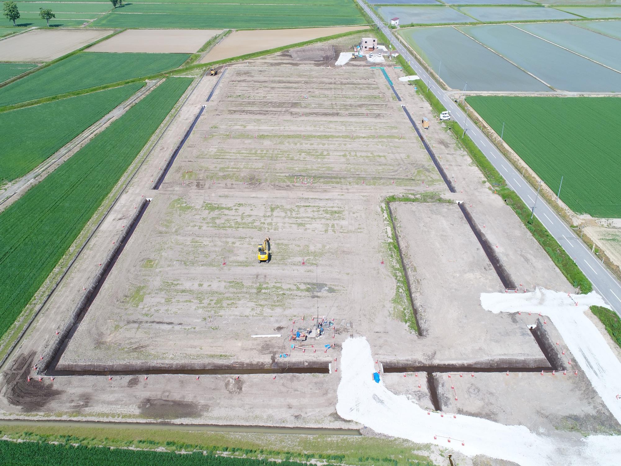 本工事は、石狩川(下流)河川整備計画に基づき、北村遊水地周囲堤の試験盛土を行うものである。