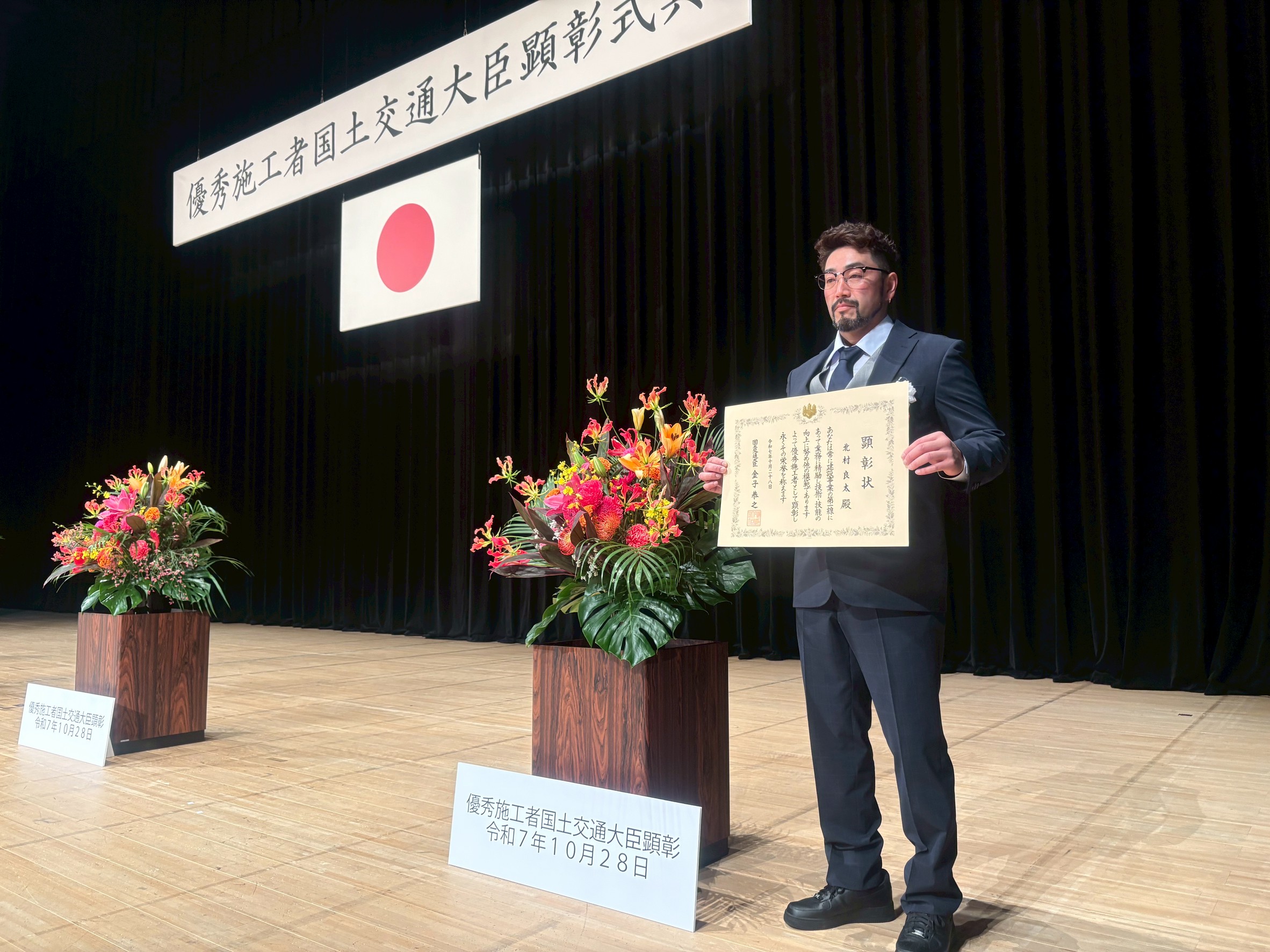 2025年10月28日、当社の北村良太さんが国土交通省の2025年度優秀施工者国土交通大臣顕彰(建設マスター)を受けました。