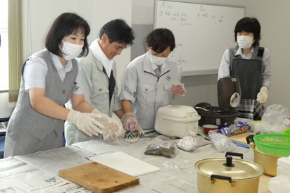 本社では社員が炊き出しのおにぎりも作り、配給しました。