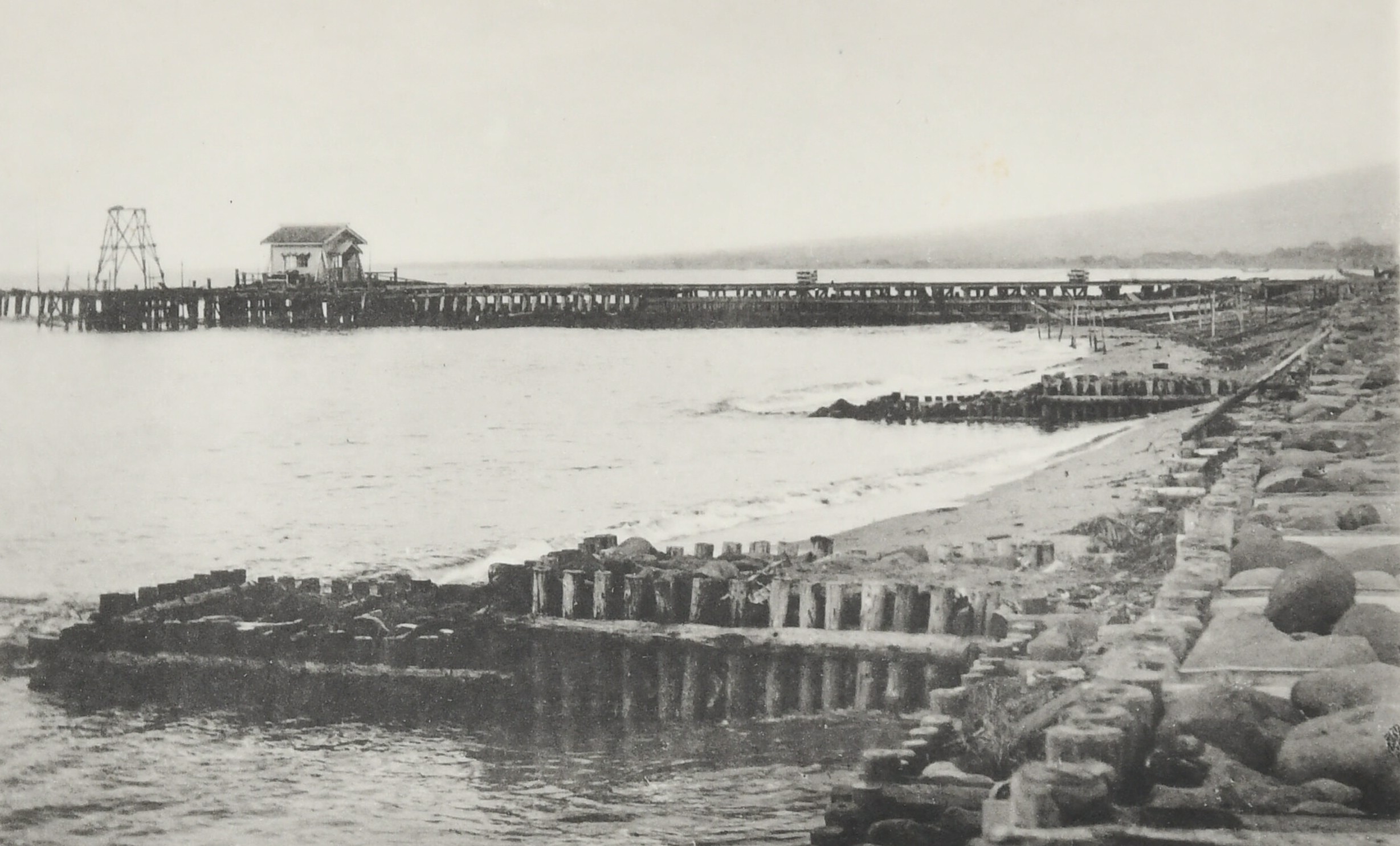 全長255mの森桟橋。写真は1911(明治44)年の様子で、この年に改築された。航路は一時廃止ののち明治41年に再開、1928(昭和3)年の鉄道開通の頃まで運行していた。現在も杭の遺構が見られる (北海道大学附属図書館 所蔵)