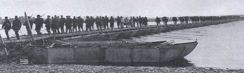 鴨緑江を渡る日本軍(出典:Wikipedia「舟橋」)