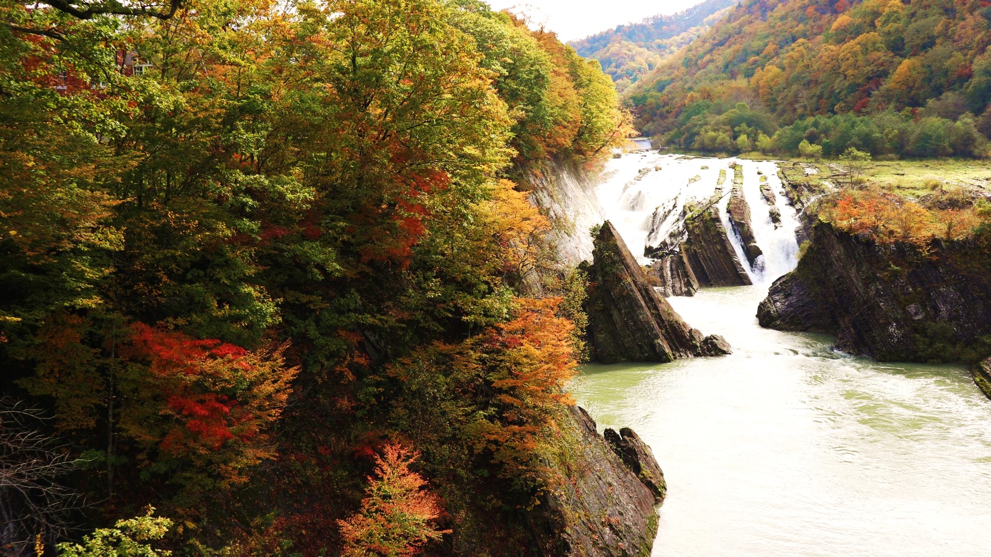 ほかにも、登別の新登別大橋は、高低差120mの谷に架かったアーチ橋の上からの雄大な紅葉、神居大橋から眺める神居古潭の荒々しい渓流の紅葉等々、数え上げれば切りがありません。