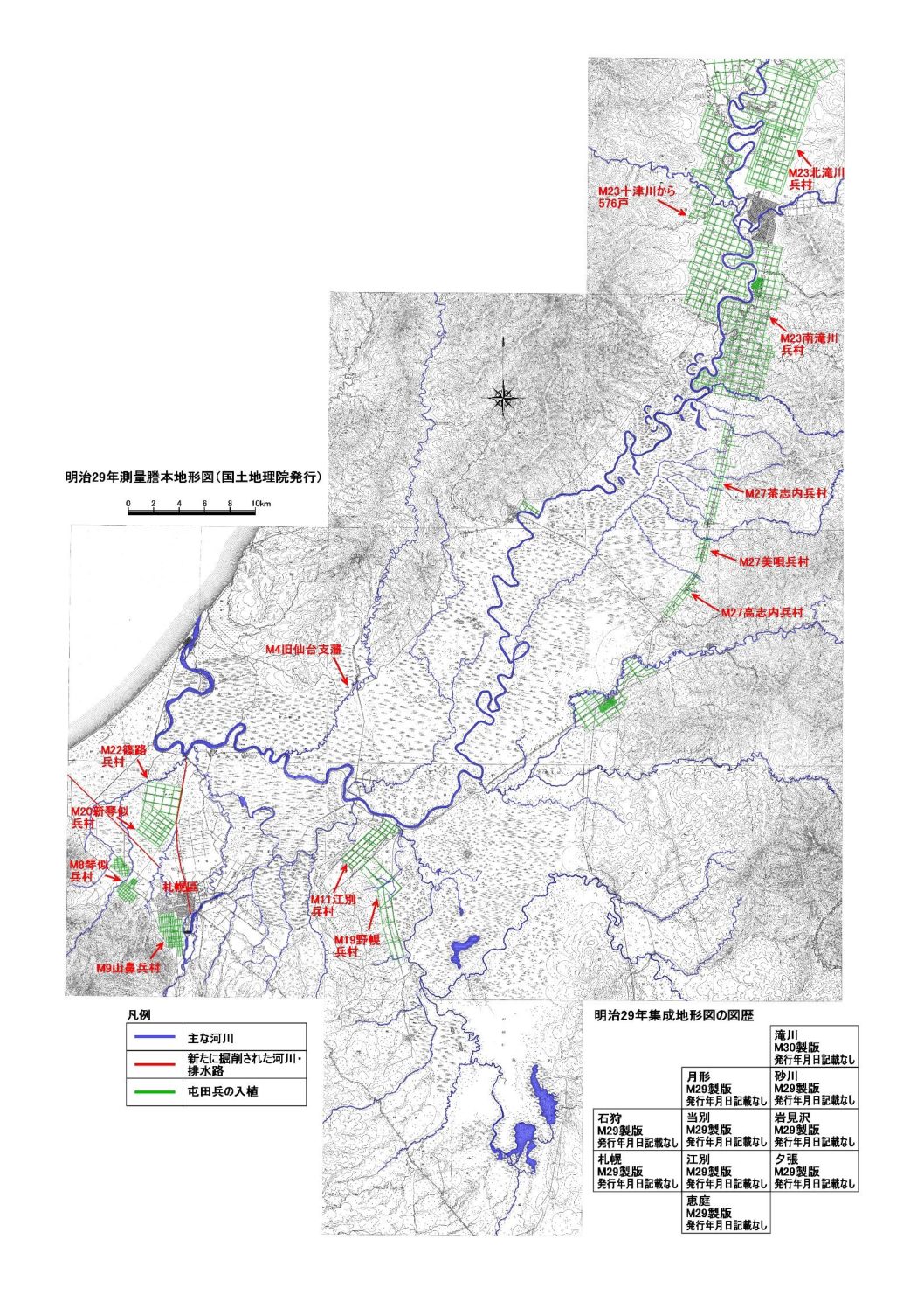 図1 明治29年当時の石狩平野と入植状況