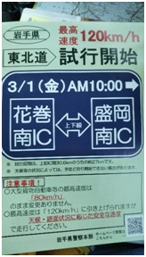 聞くところによりますと、この社会実験で事故率が増加しなければ、全国の設計速度120キロ区間(北海道においては確か千歳~苫小牧東の一部区間、岩見沢付近の道央道)で順次規制速度を変えていくようです。