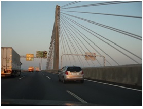 新東名を抜けて、中部地域を横断。ナビの言うままに進む。てっきり東名高速から名神高速に入るのかと思いきや、伊勢湾岸道路に案内される。これがまたすごい道路。長大橋の連続で片側3車線。名古屋付近はこれで東西方向に東名と伊勢湾岸と環状道路の三本があり、子供のころ太平洋ベルト地帯という名前を教えられましたが、この歳になってまさにその実態を感じることができました。