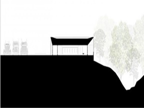 (高低差のある地形や後背の樹林地を活用することを前提に、敷地造成が計画されている)