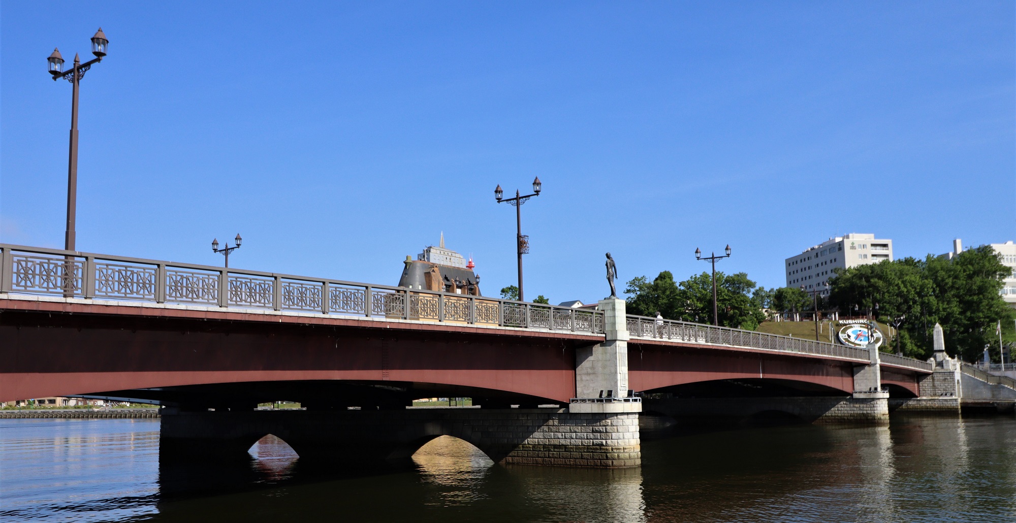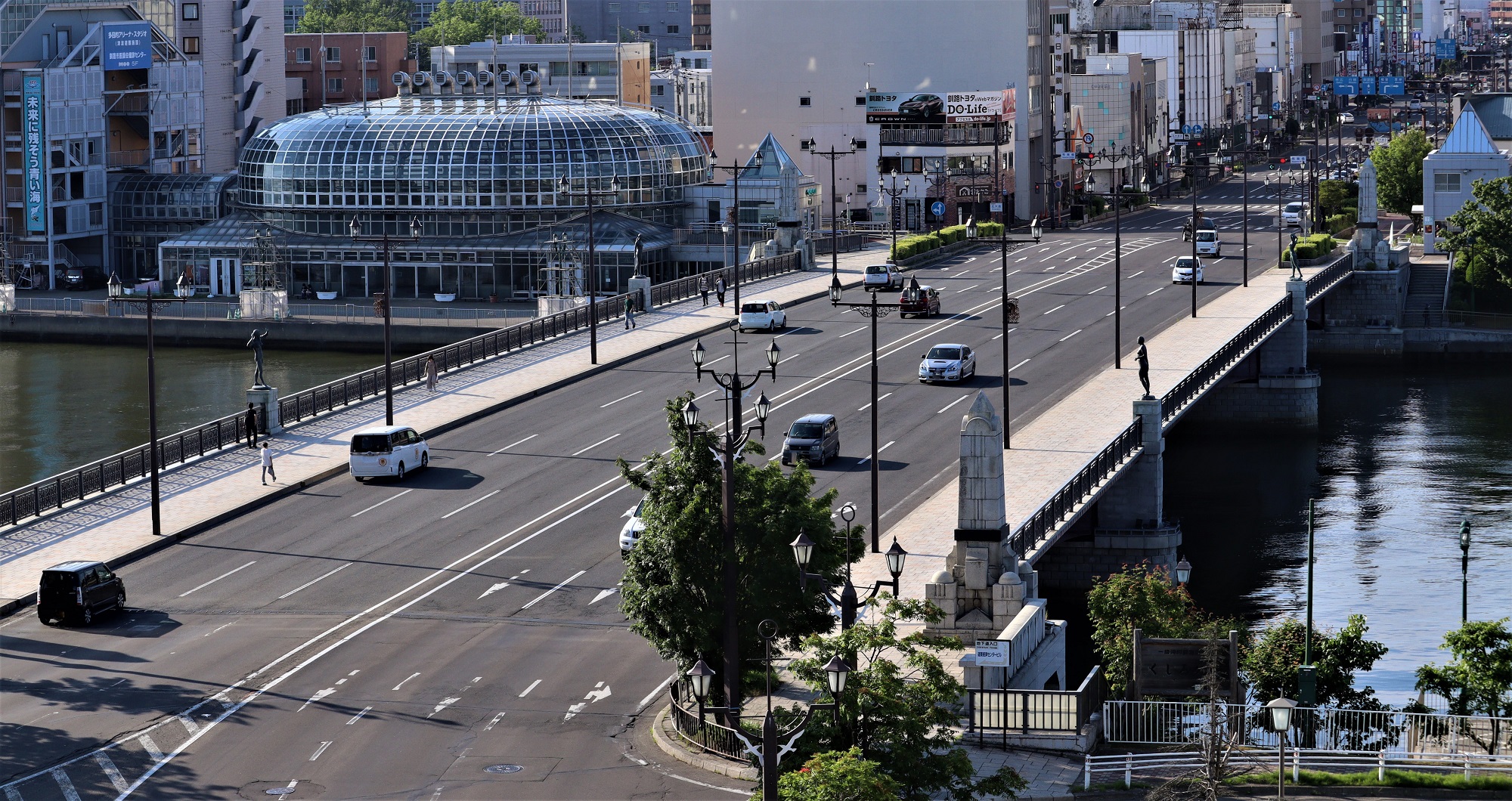 これに代わる4代目は、道内で最初に鉄筋コンクリートが使われた橋で、1928(昭和3)年に完成する。ヨーロッパ風のデザインを採り入れた優美な姿が北海道の3大名橋(他は札幌の豊平橋と旭川の旭橋)と讃えられるものだった。