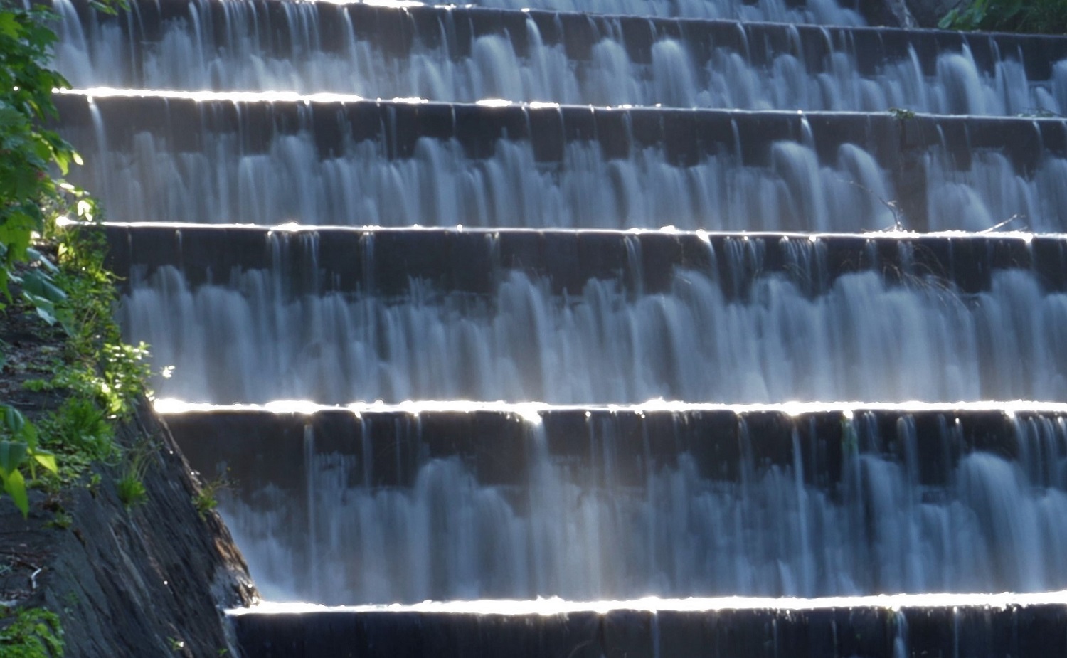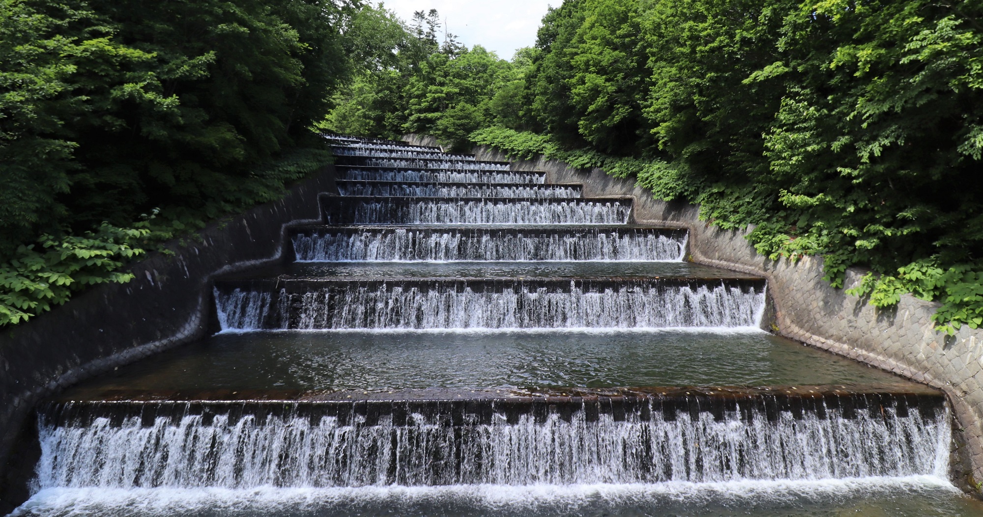 ダムの側には、溢れ出るなどした水を川に戻す「階段式溢流路(いつりゅうろ)」もつくられた。21㍍の高低差に10段の水溜式の階段を設け、巧みに水の勢いと濁りを制御する施設で、こちらは景観の面からも長く市民を潤すことになる。