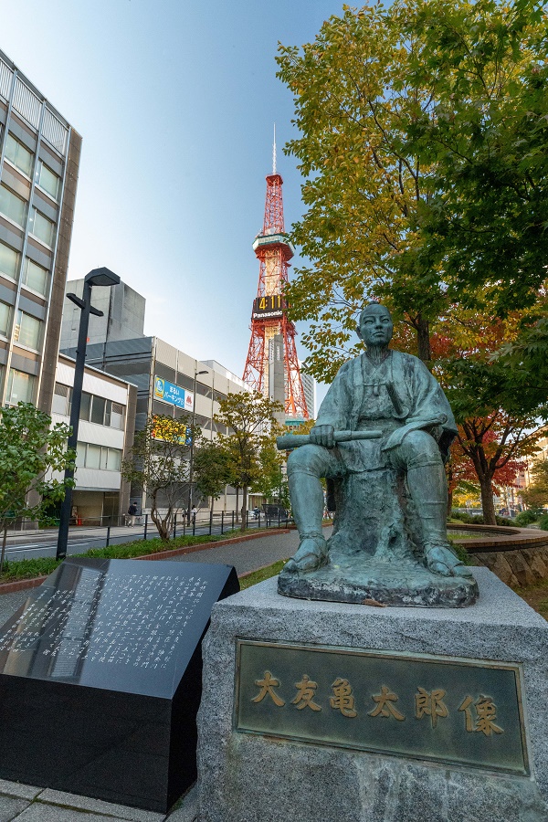 茫漠たる荒野に佇みながら、遥かなる時を見据えていたに違いない大友亀太郎。その、創成川を生み大通を拓くこととなった「大友堀」は、大地に刻まれた揺るぎない「ランドマーク」として、150年を超えて今もなお、札幌の街と市民の暮らしを支え続けている。