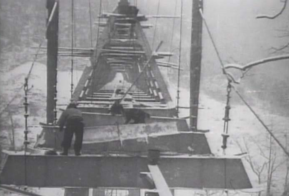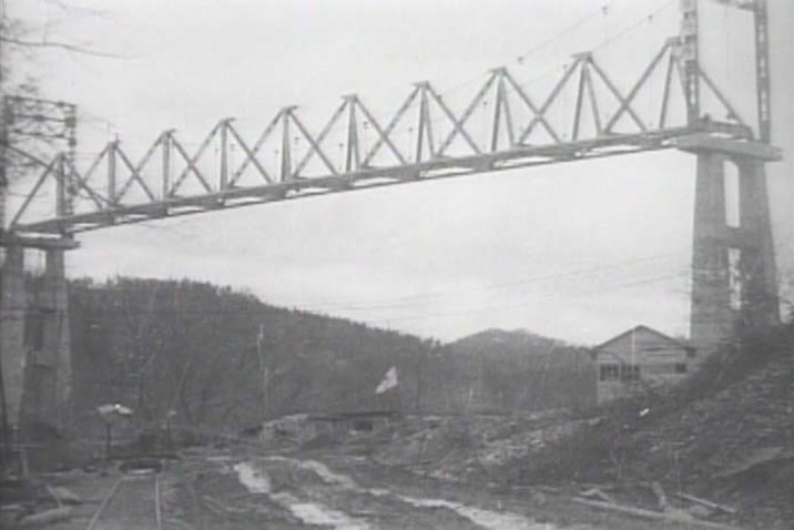1958年(昭和33年)に完成し、単線鉄道橋として使われましたが、1963年(昭和38年)に、林道整備が進みトラック輸送に切り替わったことにより、わずか6年で廃線となりました。