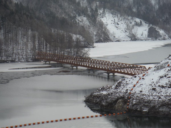 三弦橋は、大夕張ダムの建設時に水没することになった下夕張森林鉄道・夕張岳線の移設補償により建設された橋梁6橋のうち、最大のもので堤体のそばに位置する第1号橋です。