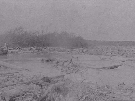 流木で埋まる夕張川のようす(北海道大学付属図書館 所蔵)