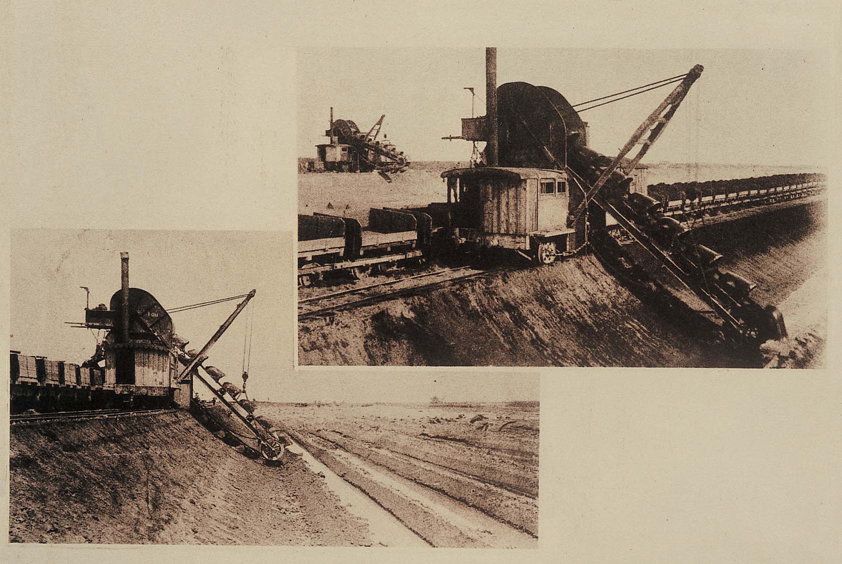 しかし、工事は当初から困難が伴った。泥炭は盛り上げても一晩で沈んでしまう。そのため、堤防を築くのに高さの約10倍もの土を埋めなくてはならないところもあった。掘削には人力のほかエキスカベータ(掘削機)、運搬には馬力トロッコのほか20トン蒸気機関車が導入されたが、重い機械は軟弱地盤の泥炭に埋没してしまう。報文には「その重量のため地盤と水平まで沈下し…」という記述が見える。敷いた線路も傾いて脱線転覆するため、保線をしながら運行しなければならず、結局、人力掘削が主力となったようだ。それでも、1925(大正14)年に20トン蒸気機関車に代わり3トンと軽いガソリン機関車が導入されると、工事は大幅に進んだ。