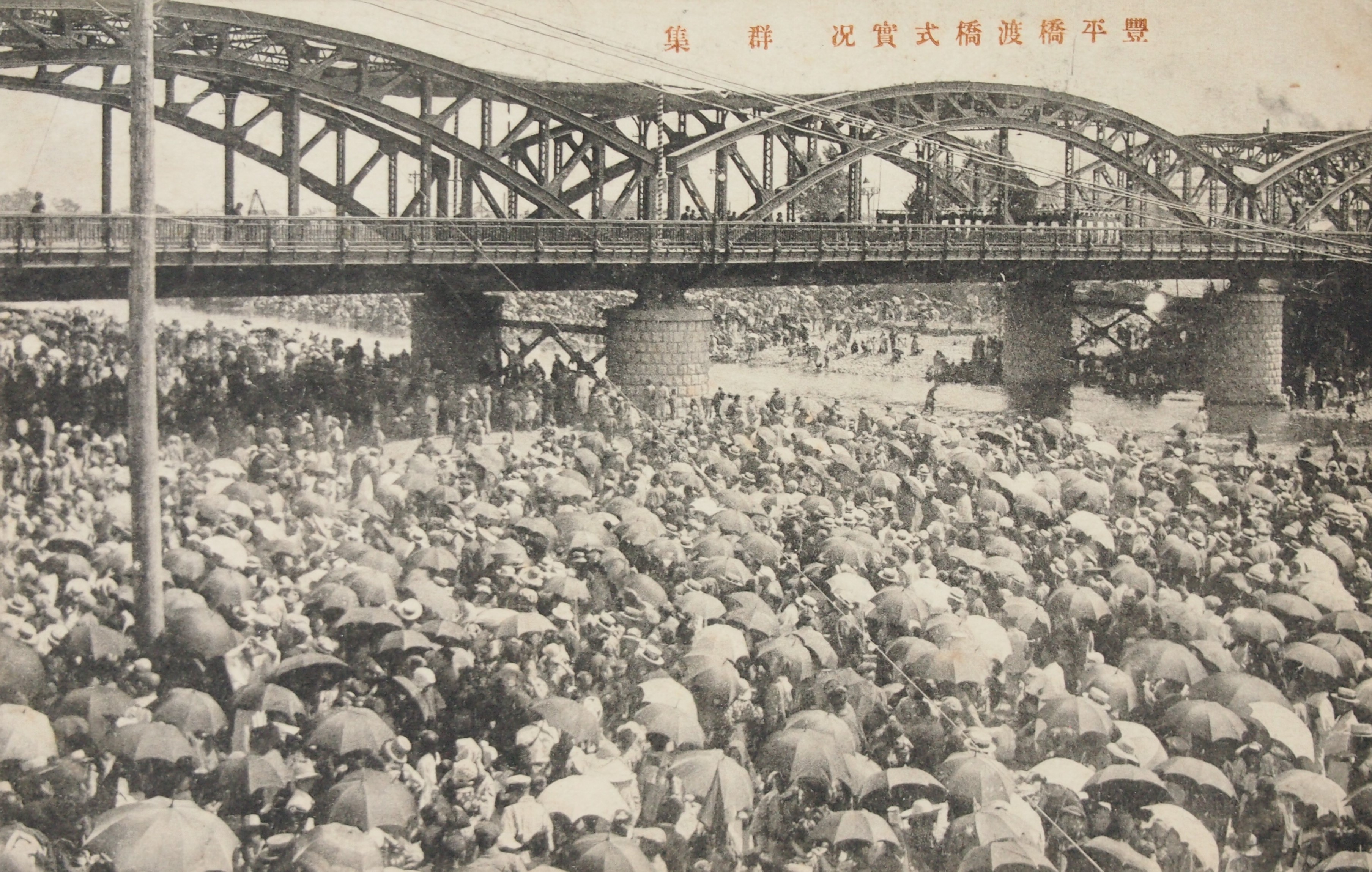 大正13年、豊平橋の渡橋式に集まった群衆(札幌市公文書館 所蔵)