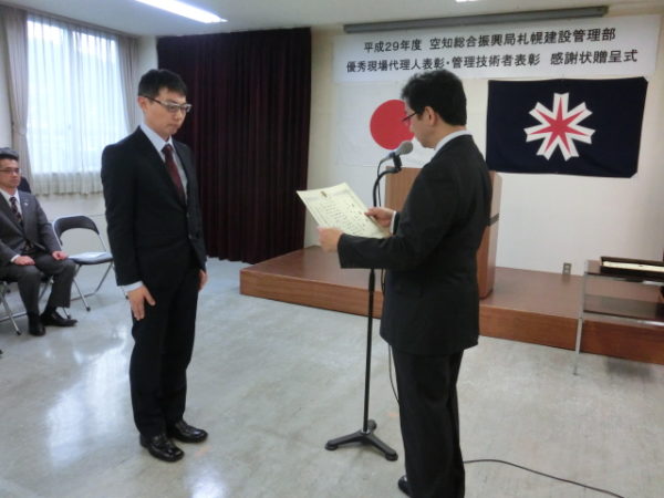 平成29年度札幌建設管理部優秀現場代理人表彰
